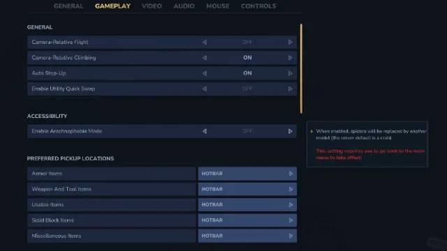 Örümceklerle yüzleşmekten hoşlanmıyorsanız, oyunun erişilebilirlik ayarlarından açıp kapatabileceğiniz bir Arachophobia modu bulunmaktadır. Bu mod, korkutucu görünen tüm örümcekleri yengeçlere dönüştürür; bu da denemek isteyebileceğiniz eğlenceli bir şey olabilir.